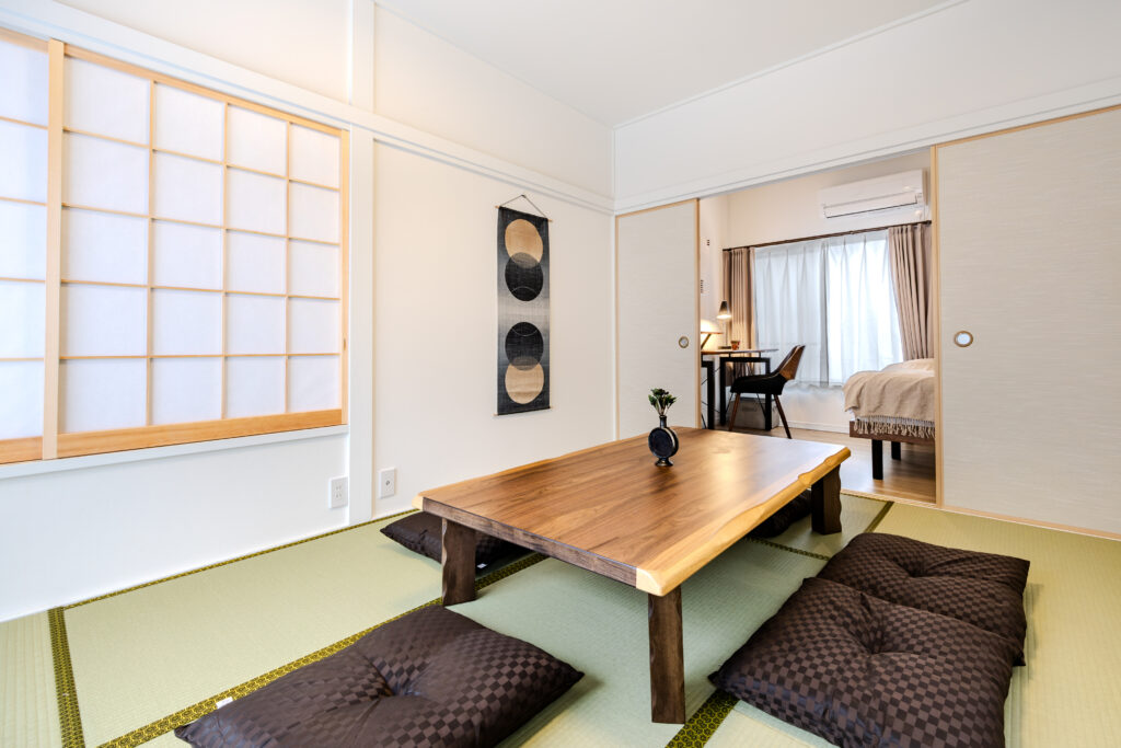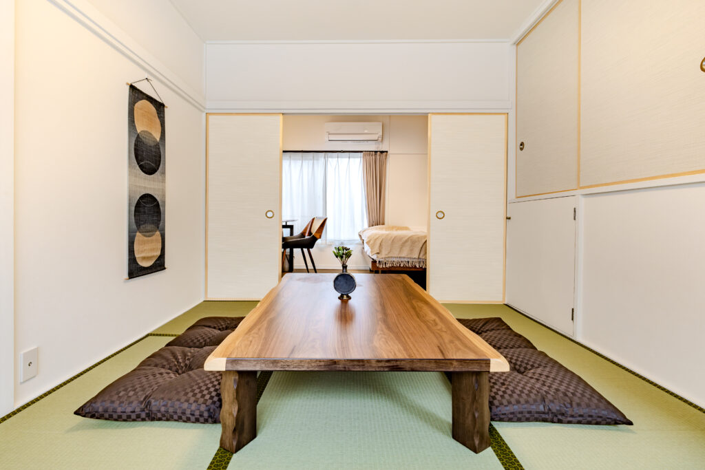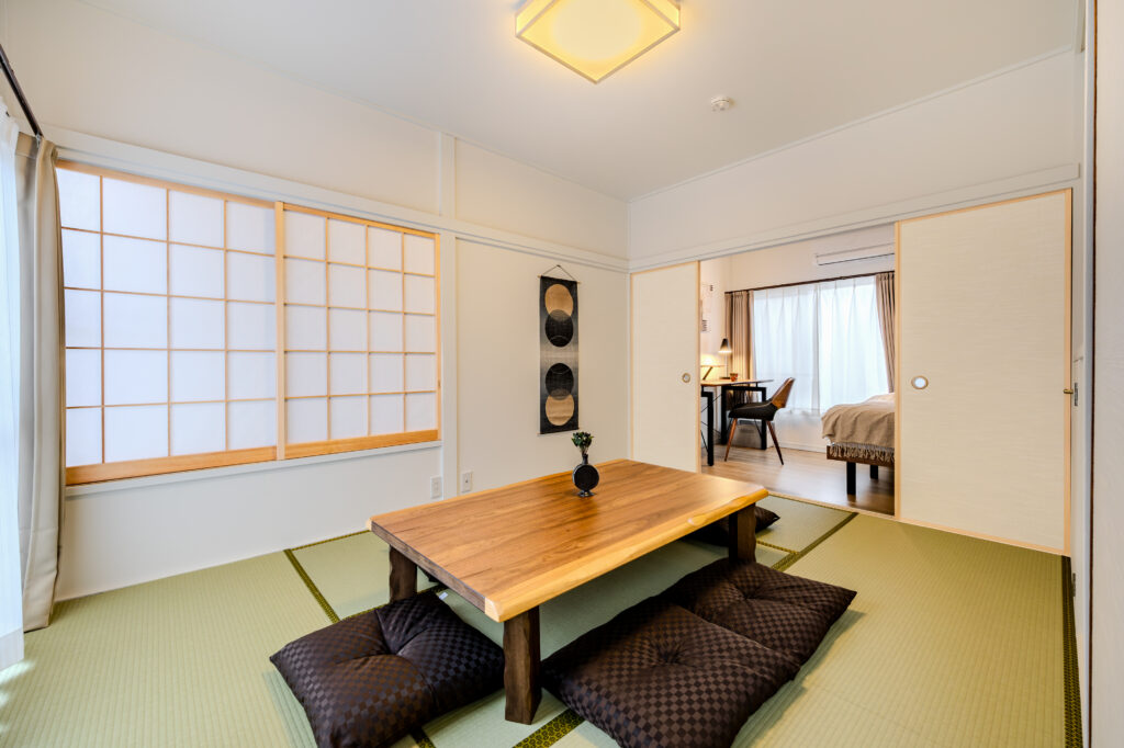 ・和風の畳のお部屋(寝室):畳の間や和式の装飾が、落ち着いた雰囲気を作り出しています。